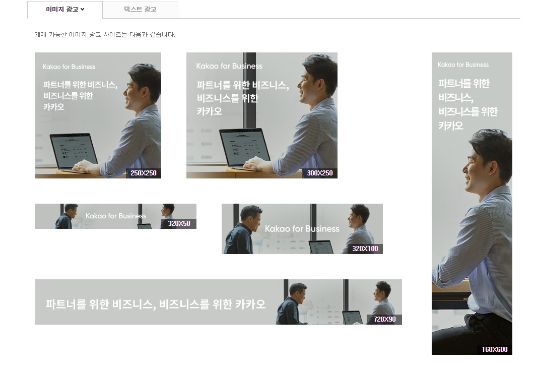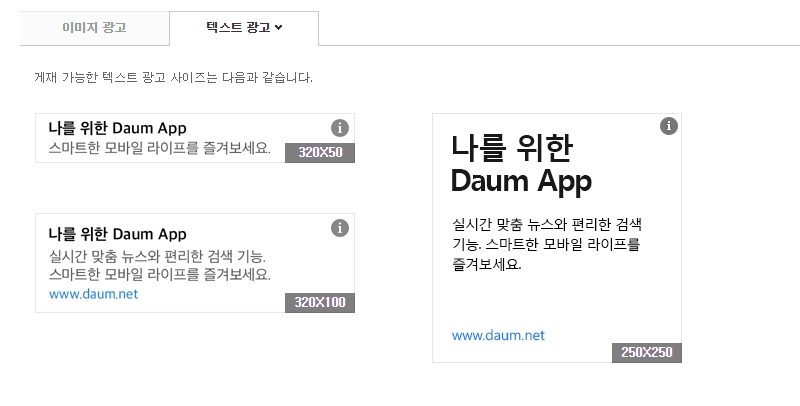게재 가능한 광고는 이미지 광고와 텍스트 광고가 있는데