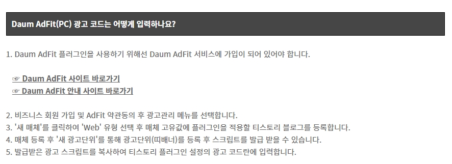 다음 애드 핏 사이트 : http://adfitinfo.biz.daum.net/ 에서 회원가입과 승인 신청을 합니다.