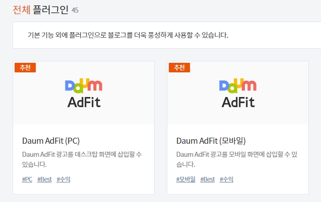 다음 애드 핏 플러그인이 보일 겁니다.