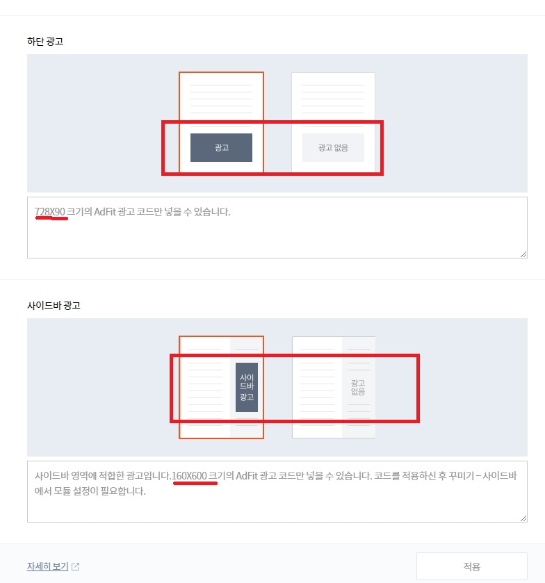 선택하셨다면 그 아래 광고 코드를 삽입하시면 되는데요.